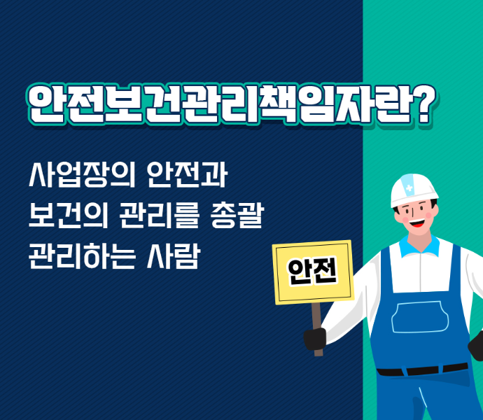 사업주가 그 기업의 업종과 규모에 따라 안전관리자 및 보건관리자의 업무에 관하여 지휘함과 그 업무를 총괄 관리할 것을 산업안전보건법 제13조에서 의무화하고 있는 사람을 말합니다. 안전보건관리책임자를 선임해야 할 사업장은(시행령 제9조) 그 사업장에서 사업의 실시를 총괄관리하고 있는 사람, 결국 최상급자가 여기에 해당됩니다.